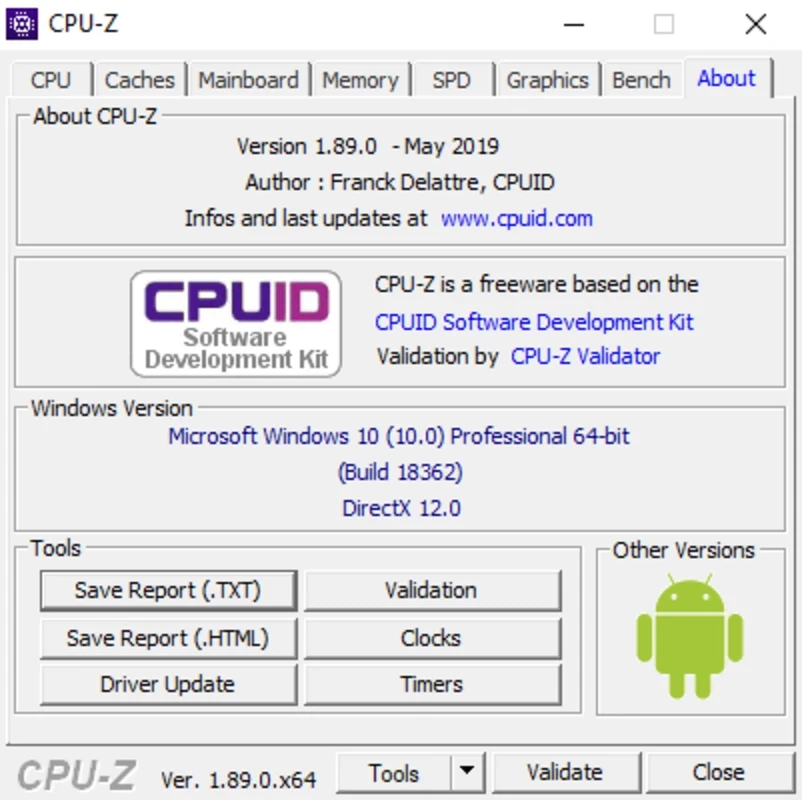 CPU-Z, opracowany przez CPUID, to darmowy program służący do wykrywania potencjalnych problemów ze sprzętem w systemie. Zawiera on szczegółowe informacje o systemie, takie jak wersja systemu Windows, zainstalowany DirectX , wersja interfejsu, maksymalna liczba obsługiwanych parametrów, przepustowość łącza itd.